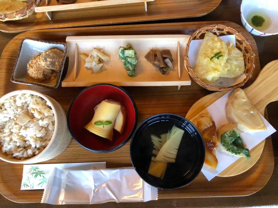 J'ai mangé le menu de pousse de bambou à la vill de Nagaokakyo.